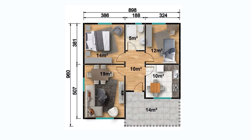 Veranda: 14 m²
